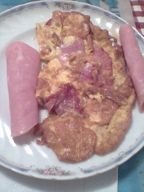 A preguiça foi tanta, que a omelete só foi mesmo servida com umas fatias de queijo e fiambre e um prato de sopa, lol,...