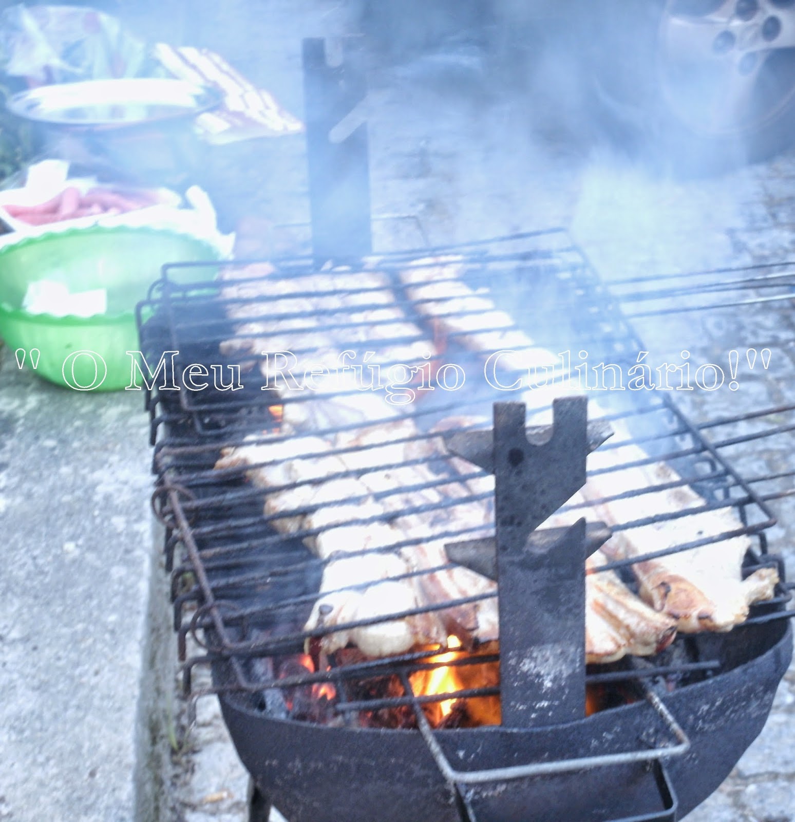 espetadas e salsichas. A família, traz as sobremesas e as bebidas e todos